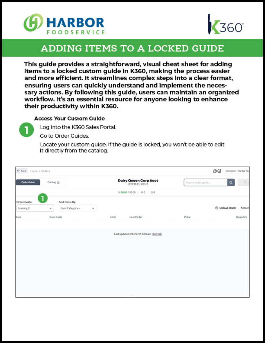 The following tutorials will help you in navigating the K360 ordering platform.
